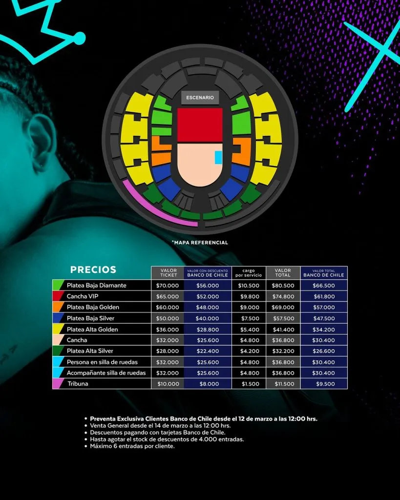 Junto con el anuncio la productora nacional también reveló los precios que tendrán las entradas el día de la venta. Estos van desde los $11.500 a los $80.500 pesos. De igual forma, puedes revisar los precios en detalles a continuación: