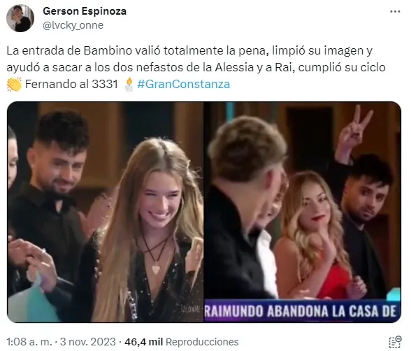 Esto no quita que la gente no quiera que se quede, pero la supremacía de las Reinas Bellas toma cada vez más fuerza en X y deja fuera a Bambino. Con esto, el participante deja la casa con una gran popularidad entre los fanáticos del programa.