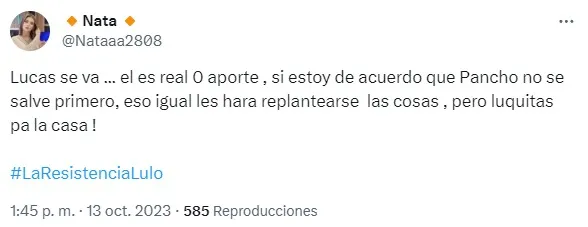 Algunos comentarios de la plataforma incluso señalan que “Qué insoportable ver a un tipo violento y clasista en tv infumableee el tipo. Lucas al 3331“; “Lucas se va … el es real 0 aporte” y “No hay que dividir votos. Ahora Lucas al 3331“.