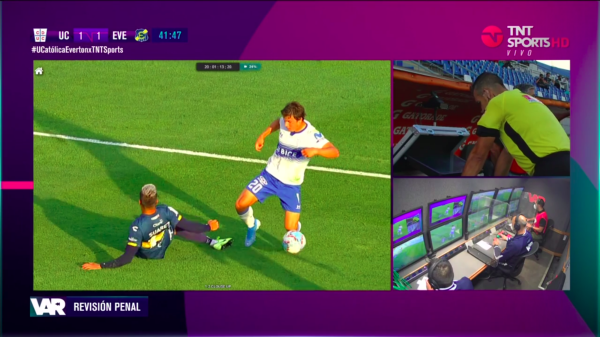 Héctor Jona rectificó penal cobrado para la UC ante Everton con ayuda del VAR.