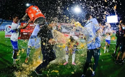 Y DT no se las llevó peladas en medio de los festejos cruzados. Como ya se ha hecho costumbre entre las celebraciones de títulos, el jefe sufrió con la algarabía de sus pupilos.