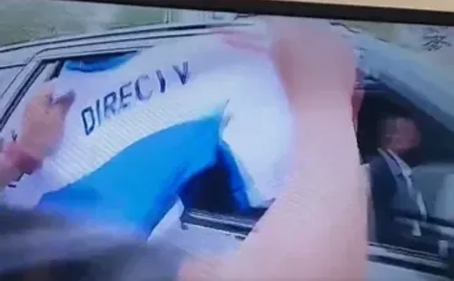 Para fortuna del hincha y de todos los cruzados, las cámaras de televisión justo captaron cuando el ahora Presidente pasó en su auto cerca del hombre que alzó la camiseta de la franja para desearle éxito.