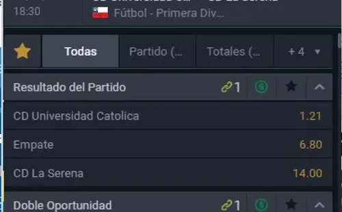 Por eso, te cuenta que el favorito para quedarse con el triunfo en San Carlos de Apoquindo esta tarde, a partir de las 18:30 hrs es Universidad Católica, que paga 1.21 veces lo que juegues, por sobre los 14.00 que paga Betsala, si piensas que ellos se quedarán con el triunfo en San Carlos de Apoquindo. Ahora, si crees que termina en empate, paga 6.80 veces lo que apuestes.