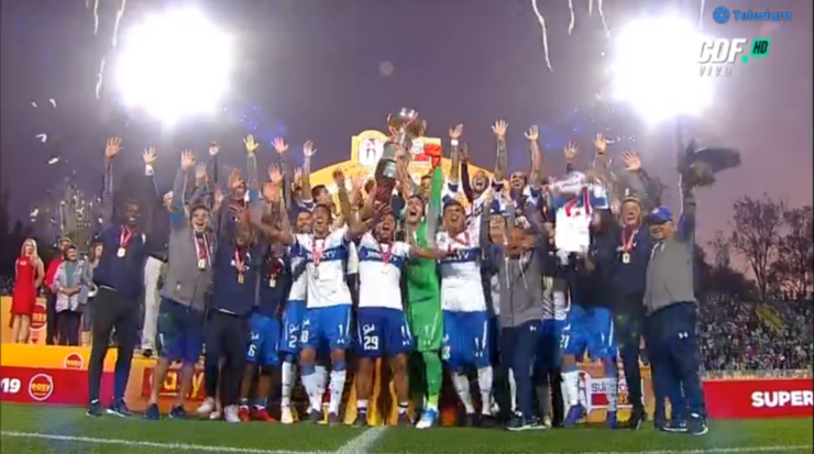 La Supercopa es pesadísima: 60 kilogramos y un metro de alto. Parece sencilla de alzar, pero al ser de metales macizos, fue complicadísimo alzarla. Y si no, que le pregunten a los jugadores de la Universidad Católica que acaban de ganarla.