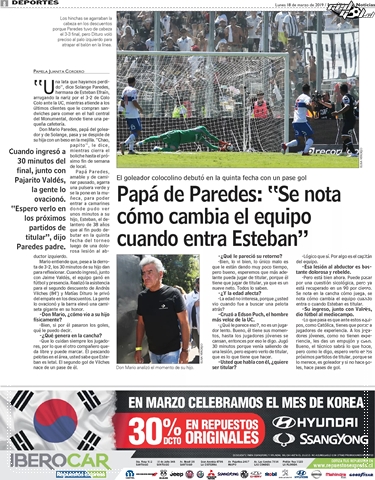 Por último LUN llevó una entrevista con el padre de Esteban Paredes. “Se nota cómo cambia el equipo cuando entra Esteban. Espero verlo como titular en los próximos partidos”, dijo don Mario.