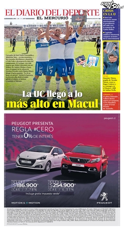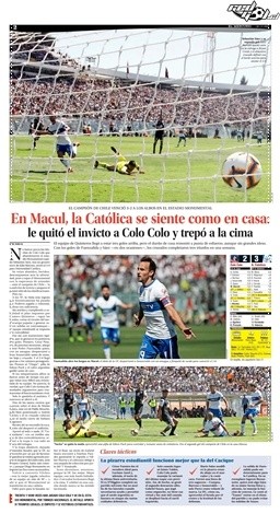 El Mercurio destacó el poderío cruzado en casa ajena. “La Católica se siente como en casa: le quitó el invicto a Colo Colo y trepó a la cima”, tituló el Decano, e incluso agregó que los hinchas albos se veían “abatidos, heridos y descompuestos” por la derrota.