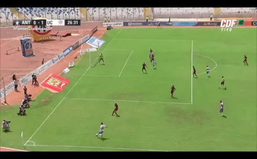 Luego al 35′, el juez Felipe González no dudó en cobrar penal para los locales por una dudosa falta deBenjamín Kuscevic sobre Tobías Figueroa. Eduard Bello se paró frente al balón y marcó el empate parcial.