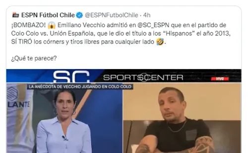 Emiliano Vecchio contó sin filtro la verdad de lo sucedido en el Campeonato Transición 2013 cuando Colo Colo en la última fecha se enfrentó a Unión Española en un partido que resultaba definitivo en la definición del título, en una lucha en la que también se involucraba Universidad Católica.