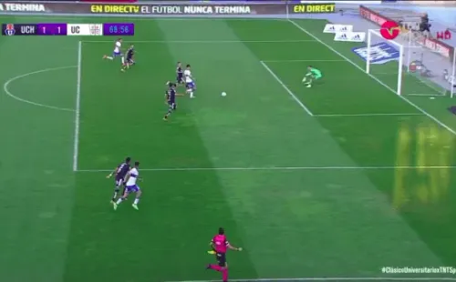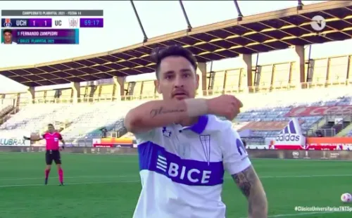 Tras un centro desde el sector derecho, Zampedri anticipó a su marcador y definió de primera dejando sin opción al arquero Cristóbal Campos para lograr el empate en el clásico universitario.