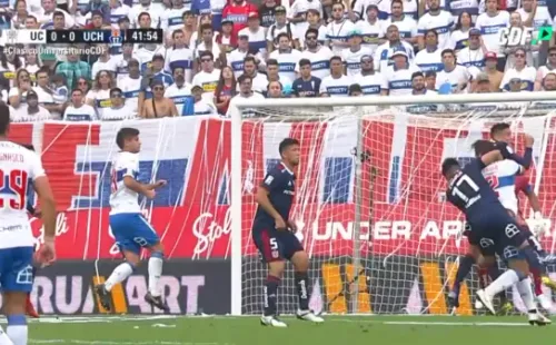 Pero el destino de la primera fracción pudo cambiar en los 41’: centro al área de la Católica y Rafael Caroca se le colgó del cuello a Germán Lanaro para impedirle buscar el cabezazo.