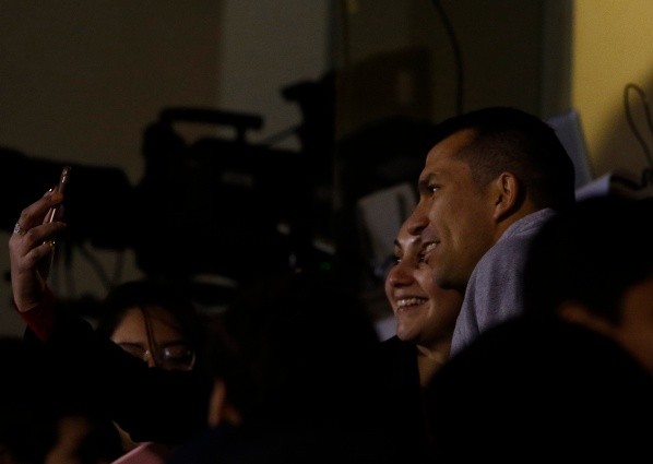 Dispuesto en uno de los sectores VIP de la tribunaSergio Livingstone, Gary Medel aprovechó de fotografiarse con varios hinchas cruzados que le pidieron una postal.