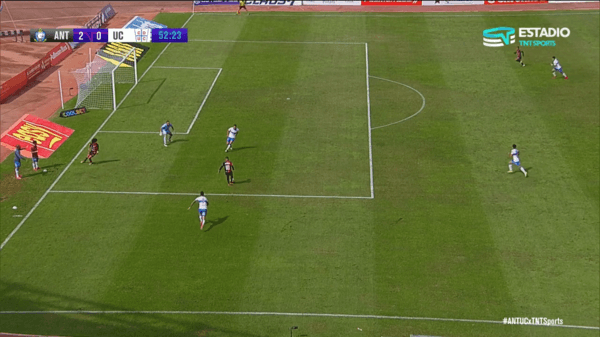 El gol llegó gracias a un error de la UC: vino el balonazo largo de Antofagasta y Tomás Asta-Buruaga llegó primero al cruce. Sin embargo, el defensor cruzado dio atrás buscando a Sebastián Pérez sin ver que se le metía Eduard Bello. Pase al costado y Flores la metió al ángulo desde el costado por encima de todos.
