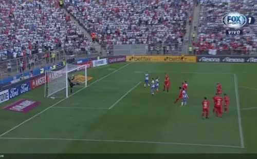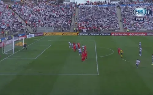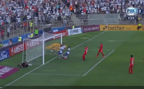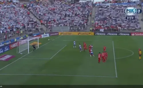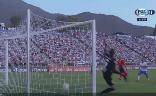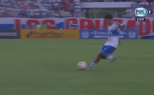 En un partido que registra incidentes en las tribunas, incluido un proyectil que impactó en un jugador de los colombianos, la UC vino de atrás para conseguir el empate parcial con un golazo.