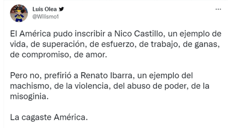 “Cabe mencionar que Renato Ibarra no tiene cargos pendientes que resolver y no recibió condena alguna. Dado que su familia apoya su reincorporación a las Águilas del América, y luego de un cuidadoso análisis, el Club ha optado por no prejuzgar aquello que la familia y las autoridades han solventado”, explicó en un comunicado el elenco azulcrema.