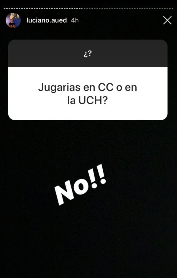 La cuarentena tiene a muchos futbolistas utilizando el Instagram más de lo habitual. Uno de ellos es Luciano Aued, mediocampista de Universidad Católica, quien abrió un hilo de preguntas.