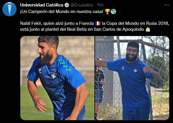 Pero no fueron las únicas consideraciones de La Franja en la visita del Betis para cumplir el último entrenamiento antes del primer amistoso contra Colo Colo: “¡un campeón del mundo en nuestra casa! Nabil Fekir, quien alzó junto a Francia la Copa del Mundo en Rusia 2018, está junto al plantel del Real Betis en San Carlos de Apoquindo”, celebraron.