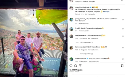 Pese a que varios de los fanáticos de la UC querían verlo junto a sus compañeros en el Ester Roa Rebolledo, el Huaso aprovechó que no jugaría para tomarse un descanso. Fue así como en redes sociales se mostró junto a sus amigos en Medellín, algo que no cayó nada de bien.