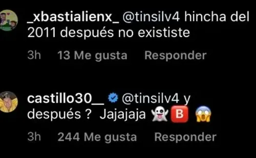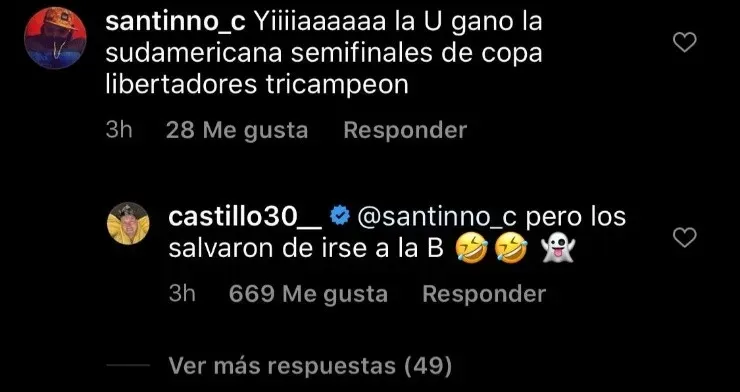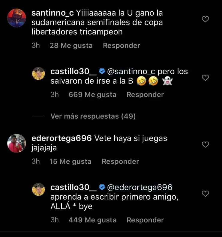 “Pero los salvaron de irse a la B” y “¿Y después jajaja?” o “Aprende a escribir amigo, es allá. Bye”, fueron algunos de los mensajes que respondió el ex UC. Revísalos acá: