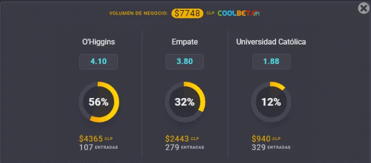 Para el OSO de Coolbet el favorito para ganar este partido por la fecha 29 del Campeonato Nacional es Universidad Católica, que paga 1,88 veces lo que juegues, por sobre los 4,10 que paga O’Higgins de Rancagua. Ahora, si te la juegas por el empate, paga 3,80 veces lo que apuestes.