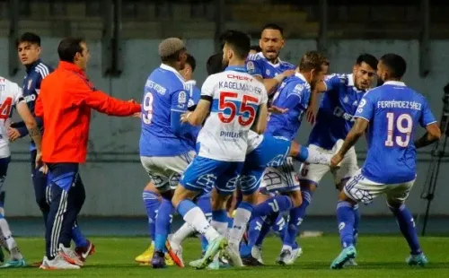 El clásico universitario en Copa Chileestaba terminando con la clasificación de Universidad de Chile a semifinalescuando Emmanuel Ojeda y Fabián Orellana se imaginaron en la lucha libre, protagonizando un triste espectáculo en El Teniente de Rancagua.