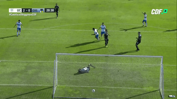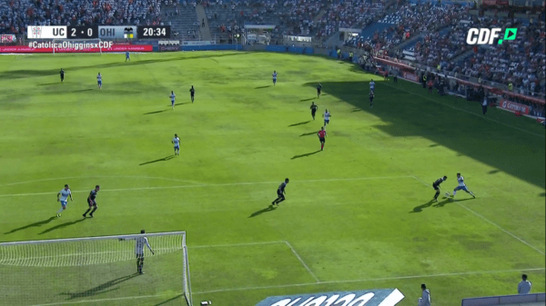 Se jugaban los 20 minutos del partido entre Universidad Católica y O’Higgins en San Carlos con marcador parcial de 1-0 para los cruzados. Tras un jugadón Edson Puch puso el segundo.