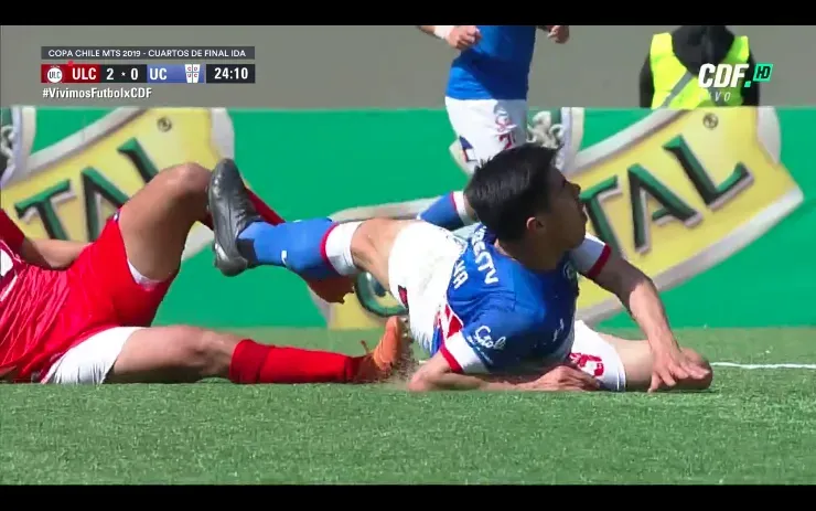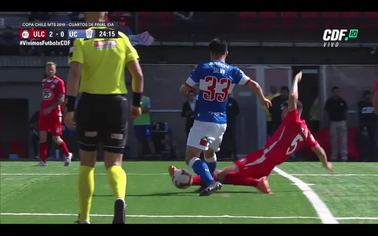 Matías Laba le pegó un tremendo chuletón a Francisco Silva en una jugadaen la mitad de la cancha.