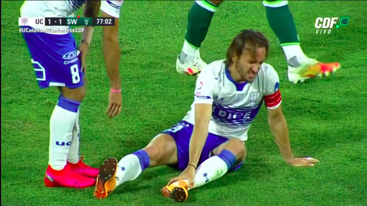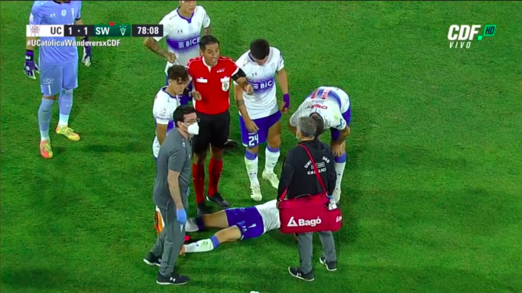 Rápidamente, sus compañeros pidieron cambio y el árbitro del compromiso, Francisco Gilabert, pidió la camilla. Tras ser retirado del gramado, Chapa Fuenzalida fue auxiliado para llegar hasta camarines y poder bajar las escaleras que dan a ese túnel en San Carlos de Apoquindo.