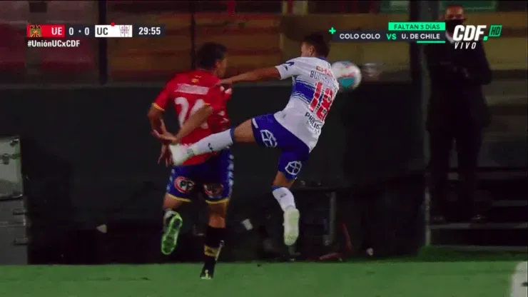 En eso estaban cuando vino una acción desafortunada para Diego Buonanotte: minuto 29 y el Enano fue a disputar una pelota con José Leguizamón. El problema para el Enano fue que el paraguayo de Unión la alcanzó a pinchar antes y el argentino pasó de largo con su intento de robo de pelota, lanzado pierna en ristre en forma de plancha que, afortunadamente, impactó en el brazo de su oponente y no en el estómago o en una pierna anclada al piso, lo que pudo haber traído consecuencias indeseadas.