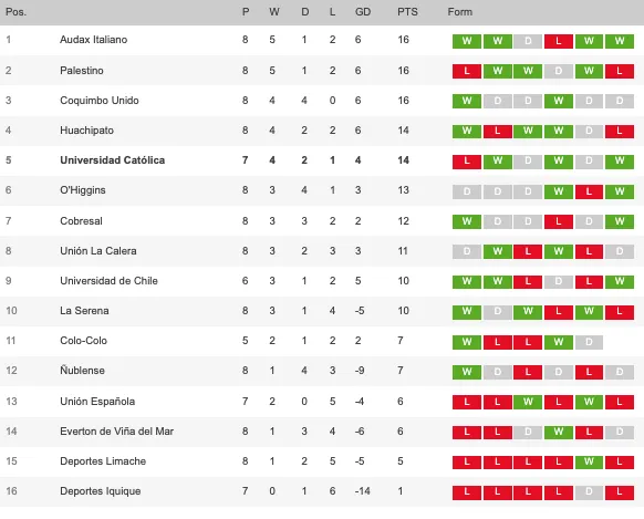 ¿Cómo va Universidad Católica en la tabla de posiciones de la Liga de Primera 2025?