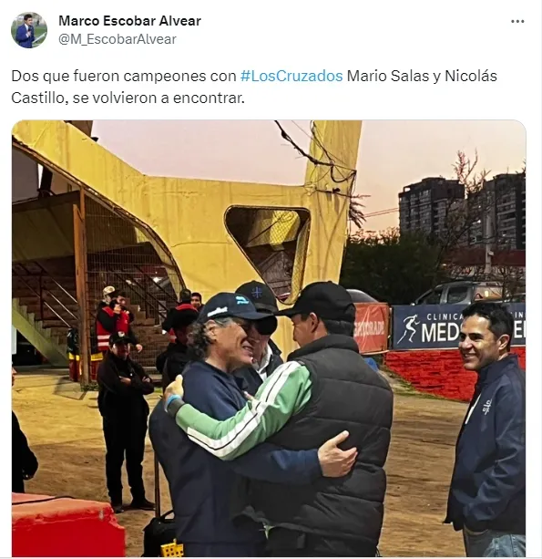 “Dos que fueron campeones con Los Cruzados Mario Salas y Nicolás Castillo, se volvieron a encontrar”, comentó en sus redes sociales.