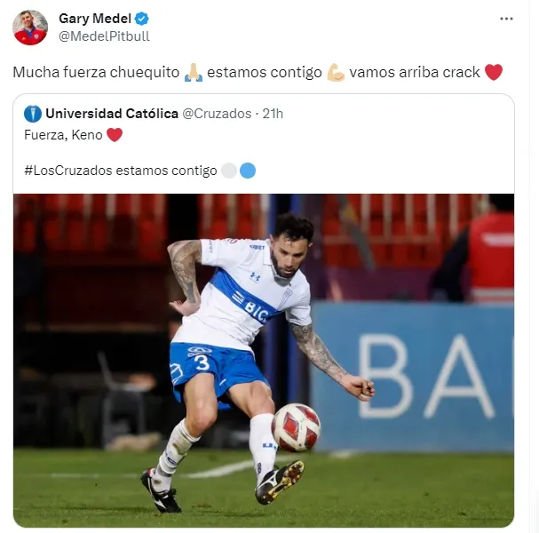 “Mucha fuerza, Chuequito. Estamos contigo, vamos arriba crack”, escribió Medel en sus redes sociales.