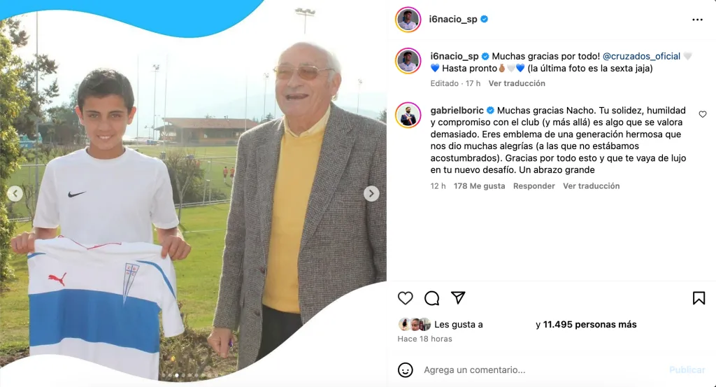 Nacho realizó una emotiva despedida de la Franja en su cuenta de Instagram que emocionó a todos los Cruzados. Incluso al presidente de la República, Gabriel Boric, quien le comentó un sentido adiós y le deseó toda la suerte en el fútbol ruso esta temporada.