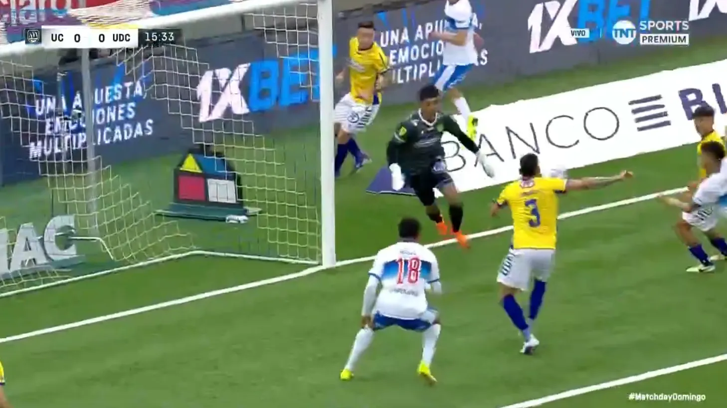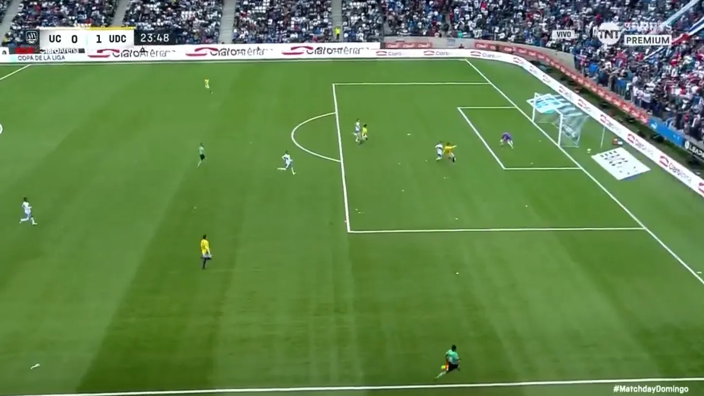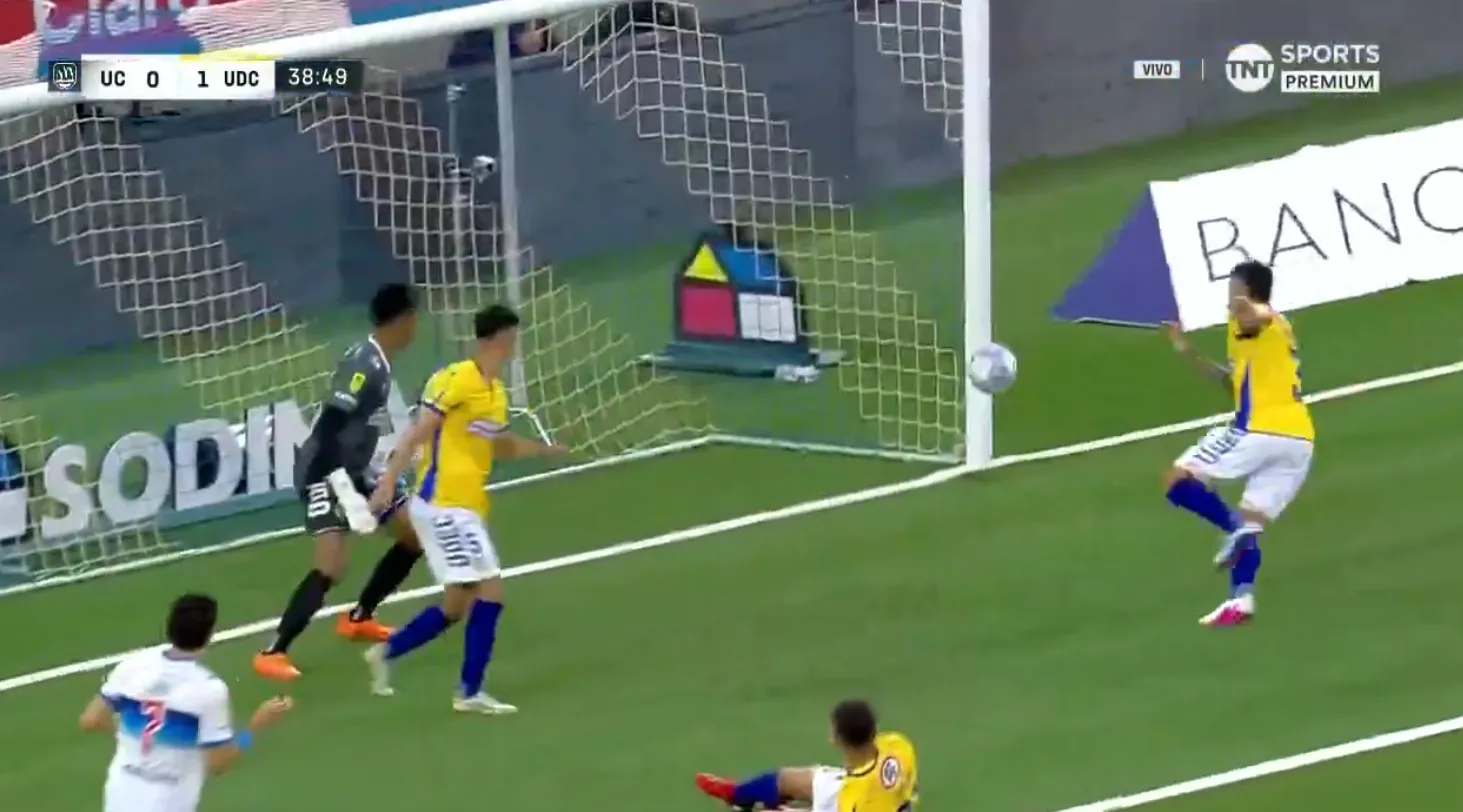 guno de los delanteros de la UC, pero que pasa muy cerca del arco de Santiago Silva.
