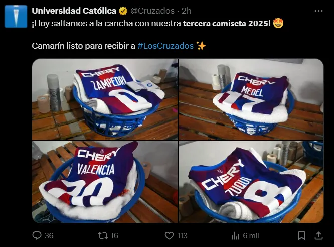 Desde la marca deportiva manifestaron en ese minuto que la tercera camiseta de la Católica 2025 es “en inspiración a su historia y a los distintivos colores presentes en su escudo, este jueves 20 de febrero, Puma realizó el lanzamiento de la nueva y rupturista indumentaria”.
