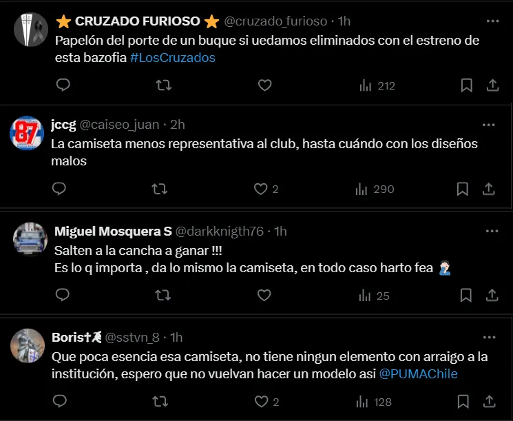 Eso sí, hay que considerar que el modelo no le gustó mucho a la fanaticada cruzada, que manifestó su descontento a la tercera camiseta de la UC en la misma publicación de la Católica para el duelo ante San Luis.