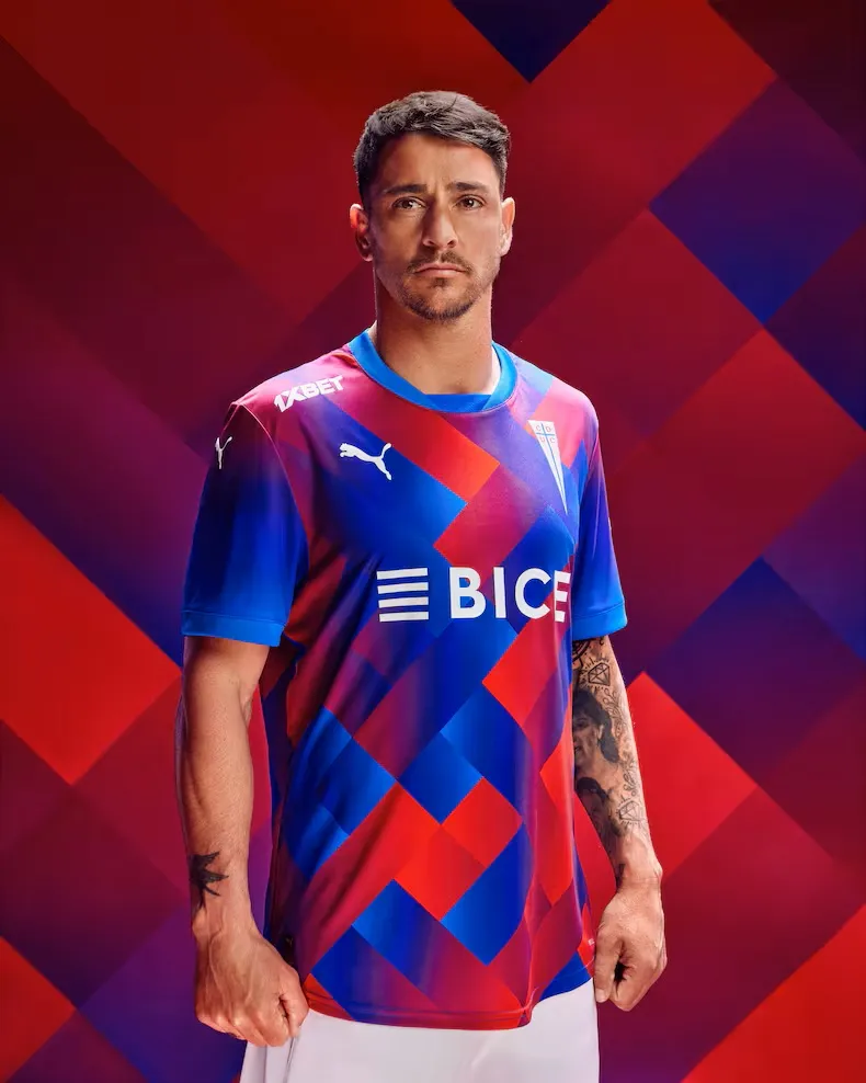 La UC saltó al terreno de juego con la tricota Puma conformada por un collage de trazos diagonales que mezclan distintos tonos de rojo y celeste, dando incluso paso a sectores morados.