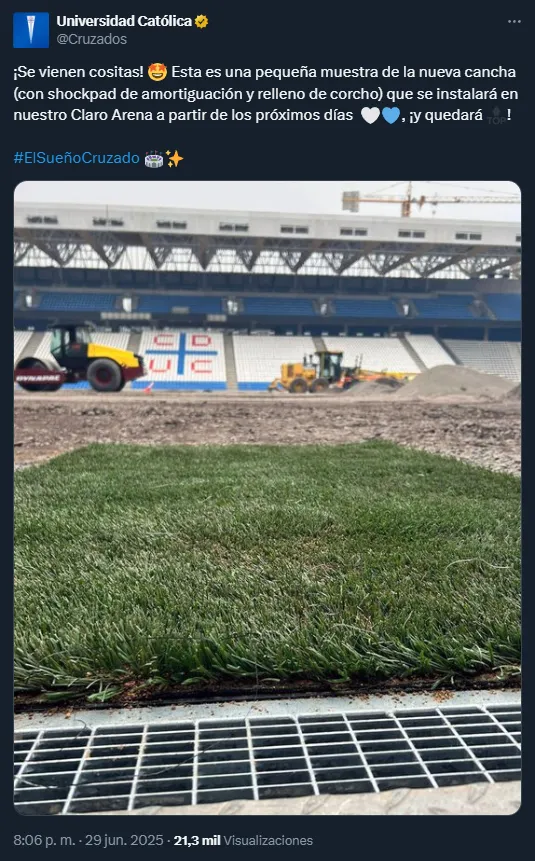 A través de redes sociales, el cuadro cruzado confirmó que se inició con una etapa clave para la inauguración del refaccionado San Carlos de Apoquindo, como lo es la instalación de las primeras piezas del pasto sintético.