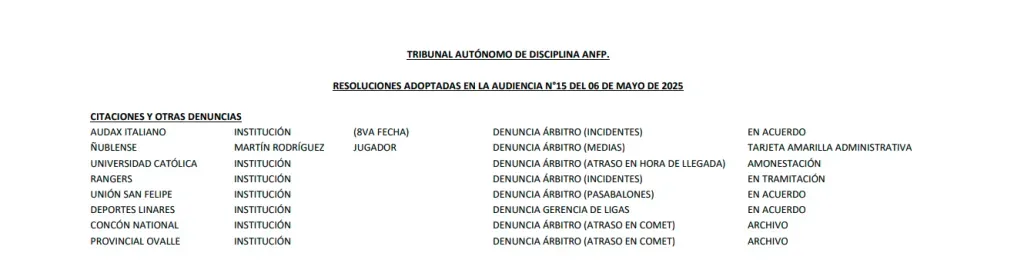 Según lo que establecen las Bases del Campeonato Nacional 2025, la institución que incurra en llegar con atraso a un recinto deportivo, “será sancionada con una multa ascendente a 50 UF ($1.956.696), aumentándose a 100 UF ($3.913.392) por cada reincidencia”.