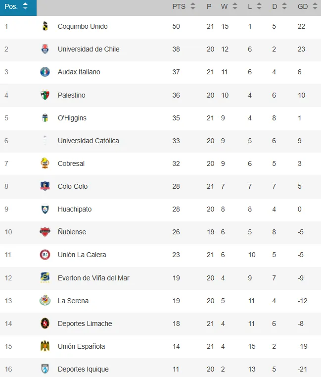 Con el triunfo la UC trepa del séptimo al sexto lugar con 33 puntos y un partido menos. La Unión sigue penúltima en zona de descenso, 15° con apenas 14 unidades y el colista Deportes Iquique al acecho.