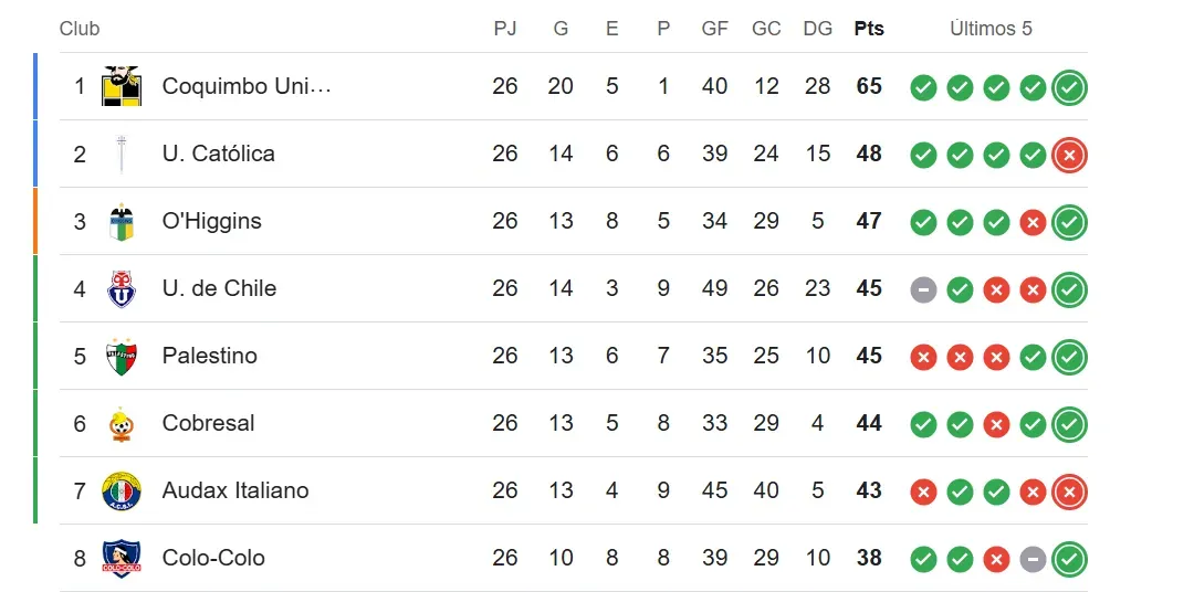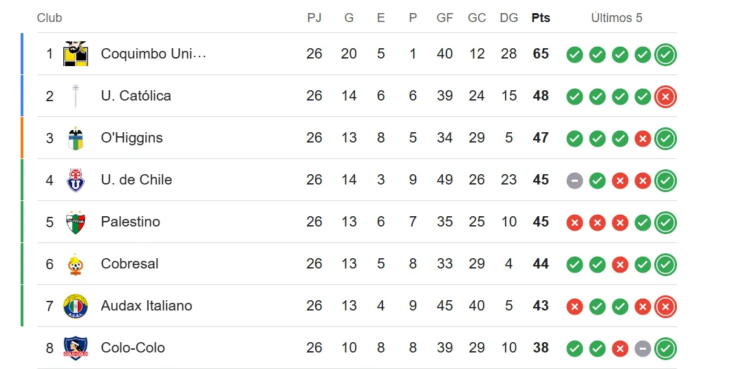 Los dirigidos por el técnico Daniel Garnero van en el segundo lugar de la tabla de posiciones con 48 puntos, hasta el momento, consiguiendo el objetivo, aunque los sigue de cerca O’Higgins (47) y Universidad de Chile y Palestino (45).