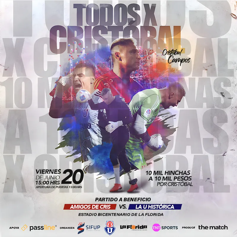 Desde el miércoles 28 de mayo ya están a la venta las entradas para el partido a beneficio: “10 mil hinchas a 10 mil pesos por Cristóbal Campos”, las que se pueden adquirir en el sistema Passline.