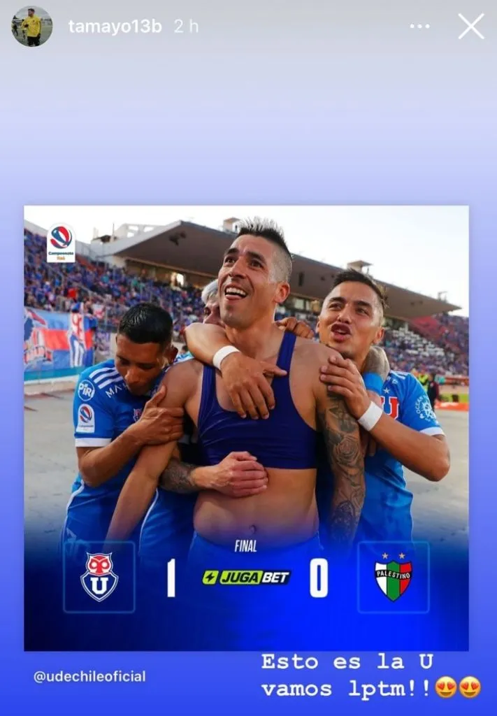 Luego de triunfo agónico ante Palestino publicó una historia en su cuenta de Instagram con la celebración, donde agregó una peculiar frase: “Esto es la U, vamos lptm”.