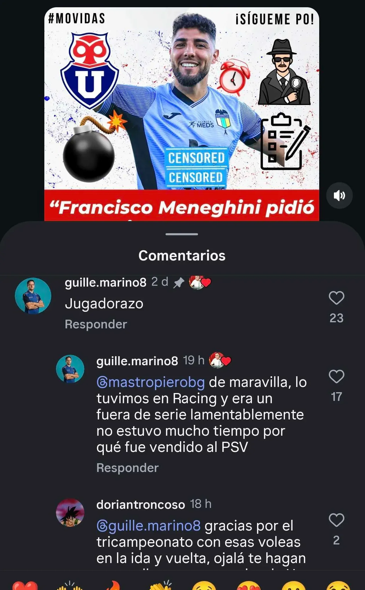 En esta publicación, Marino dejó un mensaje que ilusionó a los hinchas azules. “Jugadorazo”, escribió de entrada, para luego complementar “de maravilla, lo tuvimos en Racing y era un fuera de serie. Lamentablemente, no estuvo mucho tiempo porque fue cedido al PSV”.