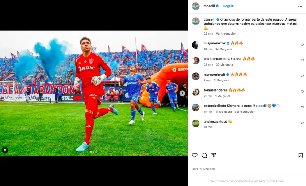 A través de su cuenta de Instagram, Cristopher Toselli publicó imágenes de lo que fue el empate 1 a 1 con Colo Colo en su primer Superclásico. Ahí dejó claro que es más azul que nunca. “Orgulloso de formar parte de este equipo”, lanzó.