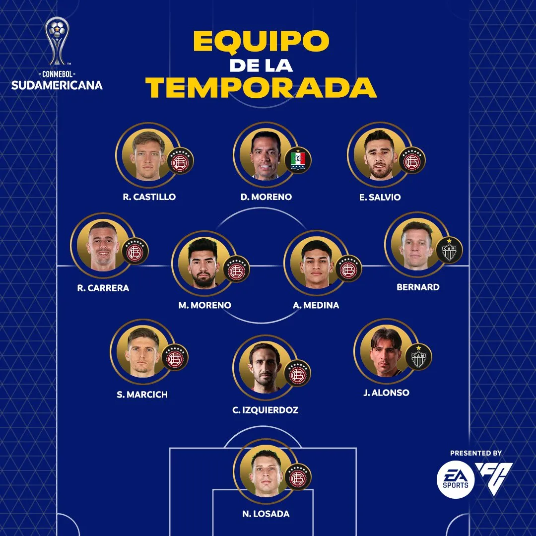 “¡El equipo ideal de la Conmebol Sudamericana! Los 11 mejores del año, según el grupo de estudio técnico de Conmebol”, informó el organismo, repletando la lista con hombres de Lanús y Atlético Mineiro.
