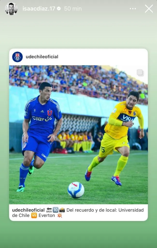 Fue en el Instagram oficial de Universidad de Chile, donde, como es costumbre, en la previa de los partidos suben fotos de recuerdos de esos compromisos, esta vez marcado por el choque ante Everton.