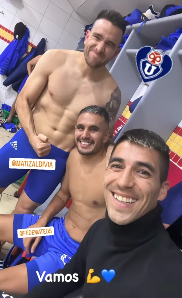 Ya en camarines publicó una fotografía con Matías Zaldivia y Federico Mateos, justo antes de entrar a las duchas, mostrando un poco la celebración en la interna de la U.