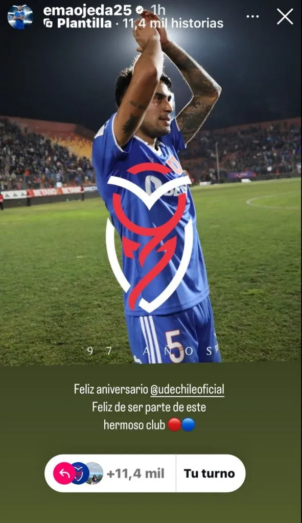 “Feliz aniversario Universidad de Chile, feliz de ser parte de este hermoso club”, escribió en sus plataformas digitales, dando a entender lo contento de ser parte de la institución.
