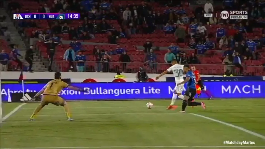 Una polémica jugada abrió la puerta para el primer gol de Universidad de Chile en el compromiso ante Huachipato, por la fecha 25 del Campeonato Nacional, que se juega ante casi 40 mil personas en el Estadio Nacional.