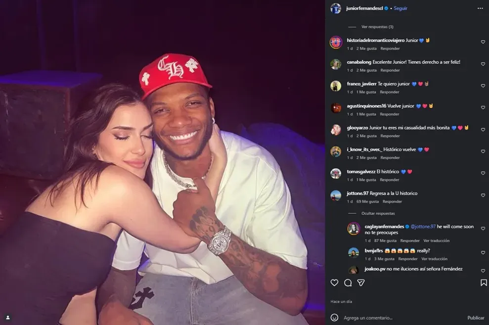 En una publicación que pudo ser netamente romántica, donde el delantero escribió “eres la casualidad más bonita que llegó a mi vida” junto a una imagen con la mujer. Fue ella misma la que encendió la ilusión universitaria en los comentarios.